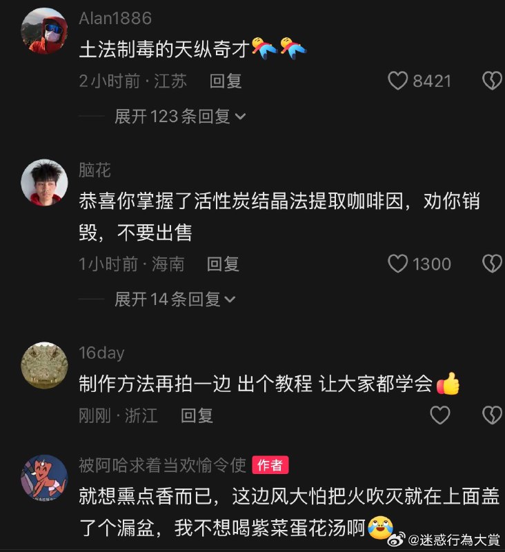 三当家: 蛋友e63b64bec06ee咖啡因提取其实是大学化学实验中的入门级试验,用索提几乎没有难度可言,约等于高中化学的双氧水制氧气